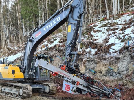 HEMH bor-mast med TE1000 borhammer - boring av Ischebeck TITAN 103/72 vertikale mikropeler Kvinesdal.